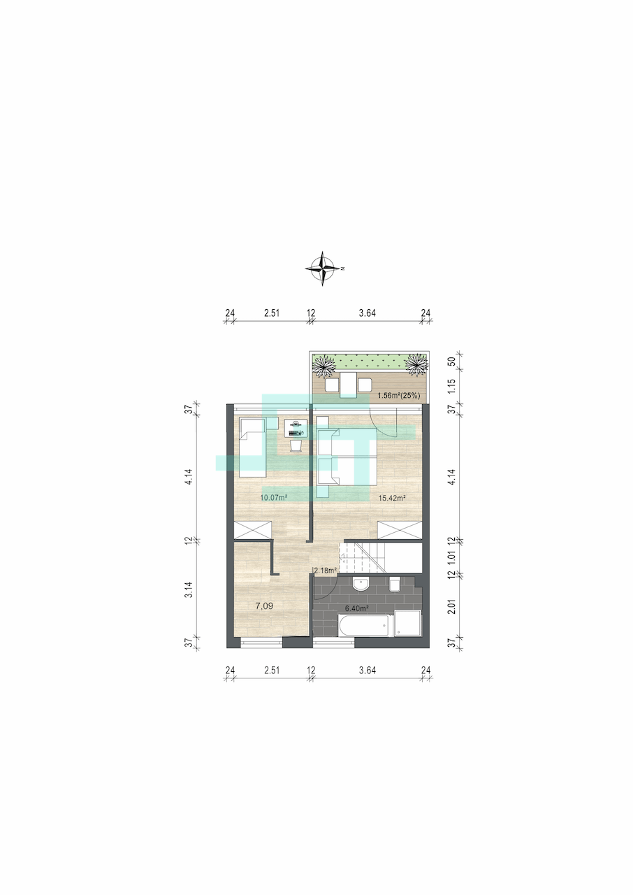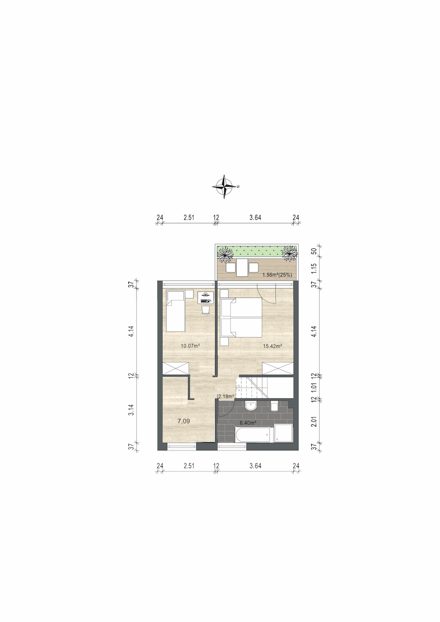 Wohnung 2 - EG: 38 m² - 248,40 €