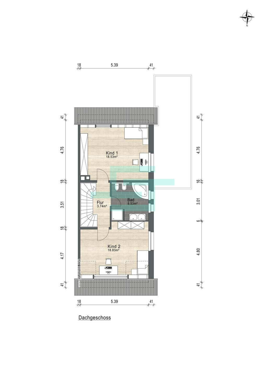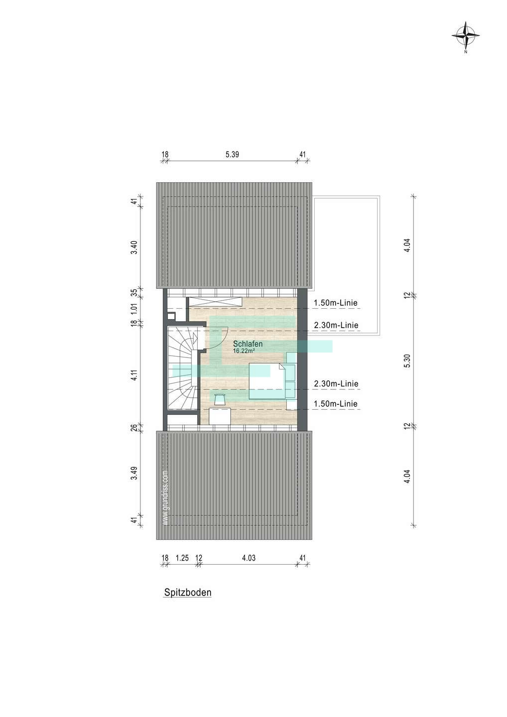 Dachgeschoss mit genehmigter Fläche